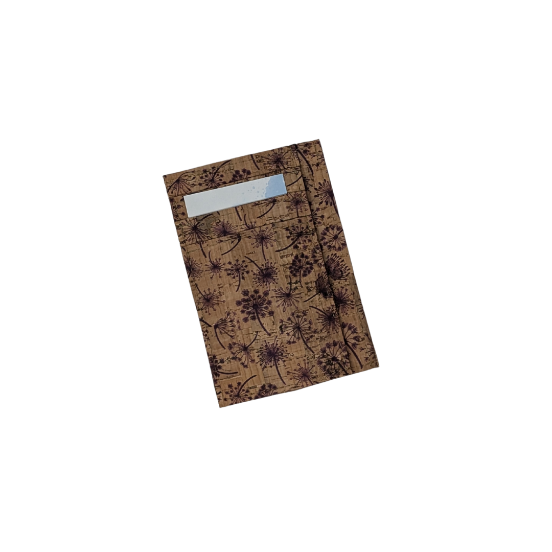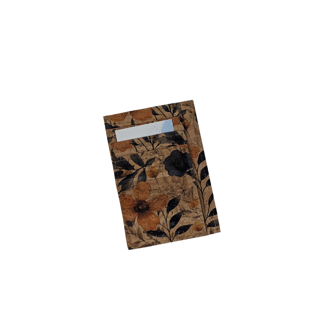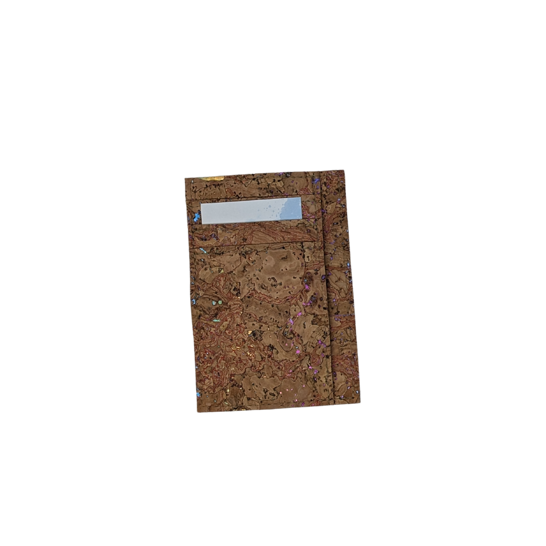 The minimalist wallet is crafted from cork and offers 3 card slots and 2 folded cash pockets. Its slim design makes it a great choice for anyone looking for a practical and lightweight way to keep cash and cards organized. This wallet fits comfortably in any pocket, making it ideal for everyday use.